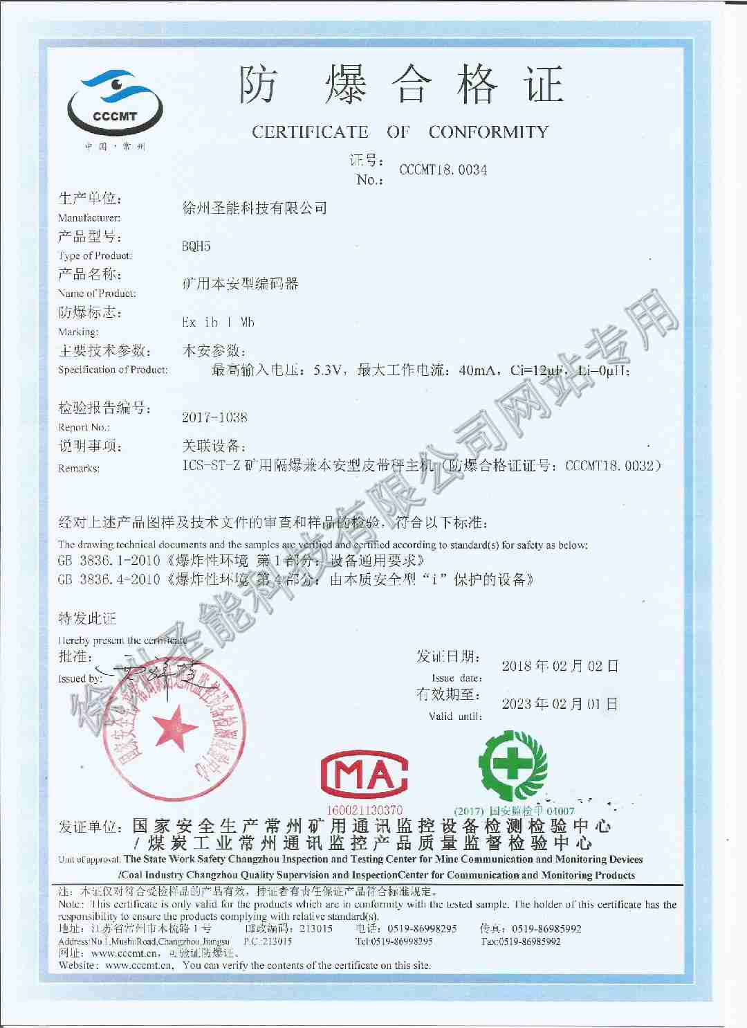 上一篇:BQH5礦用本安型編碼器煤安證書